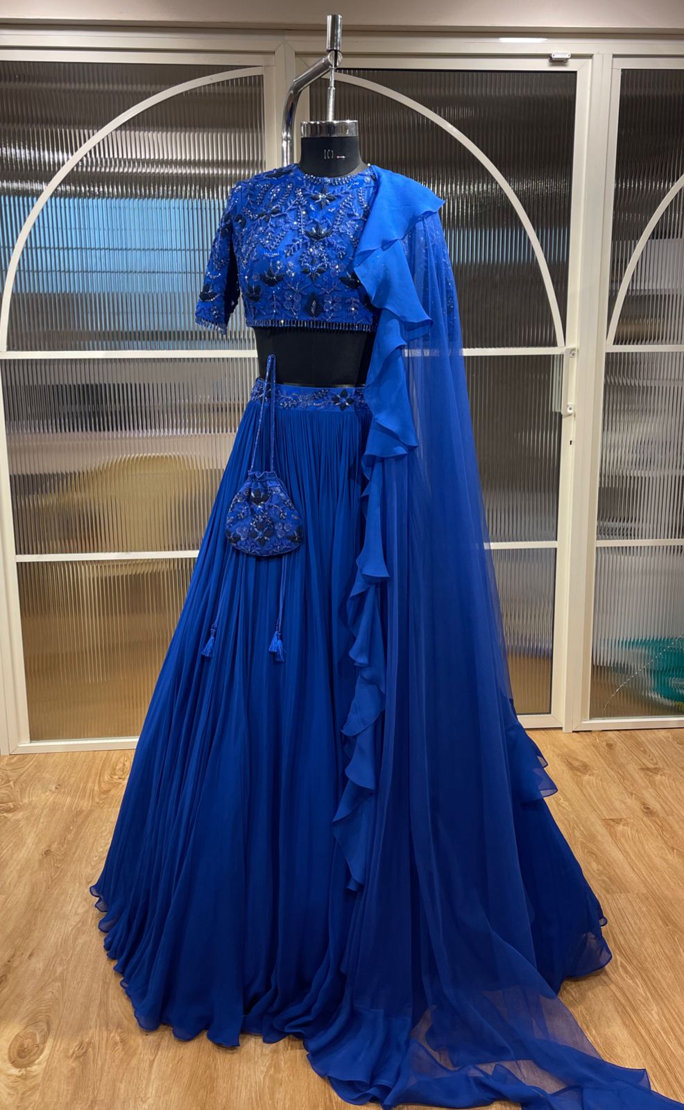 At Nayantaara, we always give customer satisfaction the first priority. To ensure you enjoy your ensemble exclusively designed by Nayantaara-- apart from the general S (small), L (large), M (medium), XL (extra large) standard-size garments, we have an option of customizing your outfit for a tailor-made custom fit. To avail this service, upon selecting the size of the outfit, be sure to select ‘Custom Fit’. Shortly after confirmation of the order, our representative will contact you and as per your convenience, arrange a virtual meeting with our seamstress to guide you through the measure-taking process.